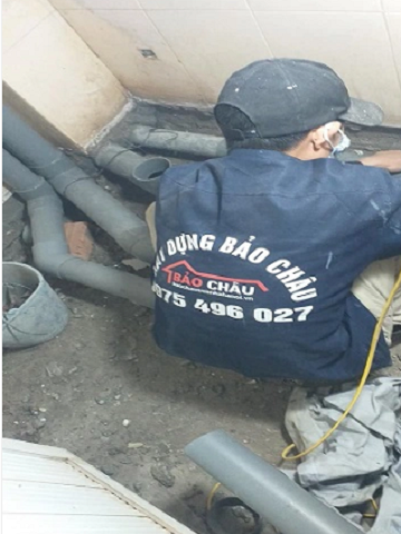 2 - đục nền, vệ sinh sạch và láng vữa dốc về lỗ thoát sàn
