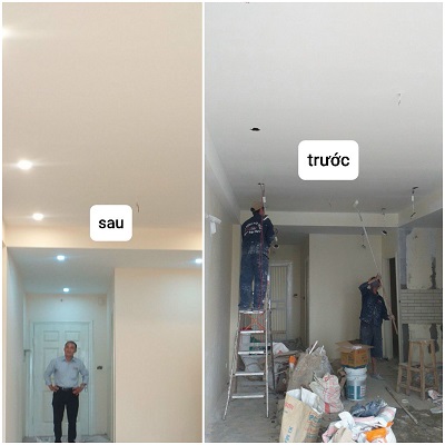 - bả vá các điểm bong tróc, sử lý tẩy mốc cho bề mặt tường trần, sơn cả cho tầng 3 bằng sơn dulux-easyclean lau chùi hiệu quả. 1 llớp lót + 2 lớp phủ = 7.000.000đ
